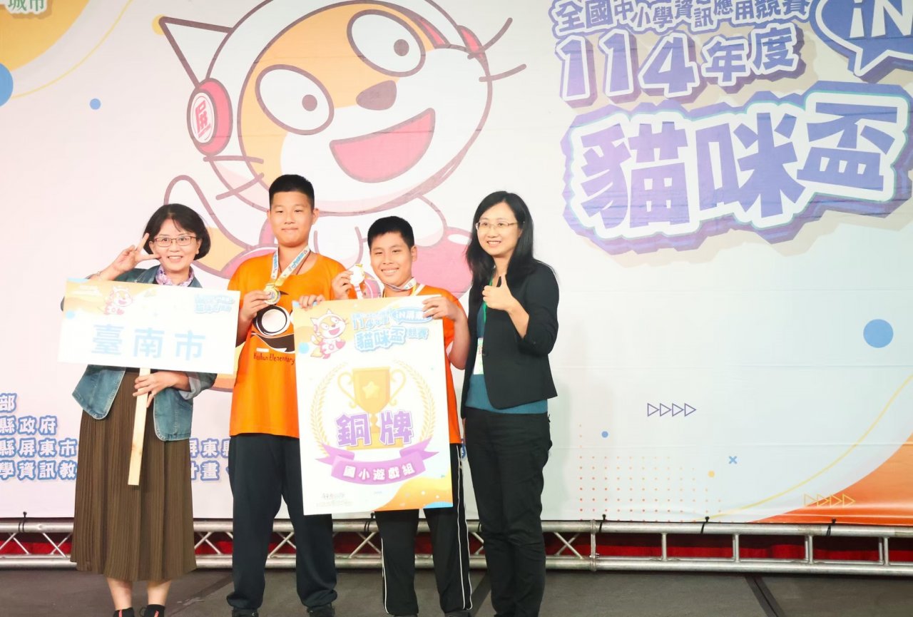本市安南區和順國民小學張書瑞、江尚宬,指導老師許瑛娟獲得國小遊戲組銅獎。